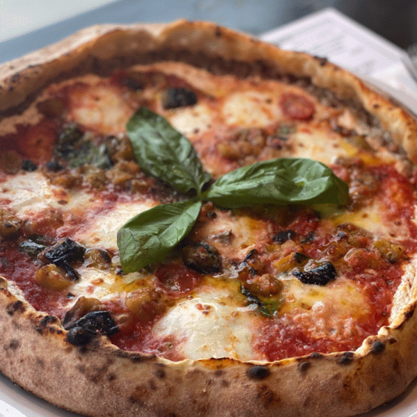 March Features Mar 13 Written By PIZZA of the Month Fresh eggplant Caponata, Ontario buffalo mozzarella with a stuffed ricotta crust (Vegan option available) Pasta of the Month Pappardelle pasta with Porcini mushrooms and a Pea Pesto sauce. (Vegan Available)