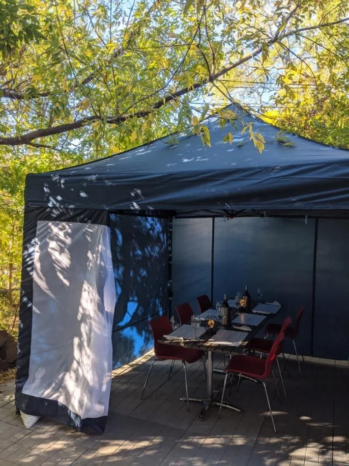 Stay safe and covered wHile dinIng outside Oct 8 Written By Outside dinning, done 850 style. Enjoy some great food and wine all in your own space, covered from the wind, rain and snow ❄️ We now have foil blankets to buy which you can take home.