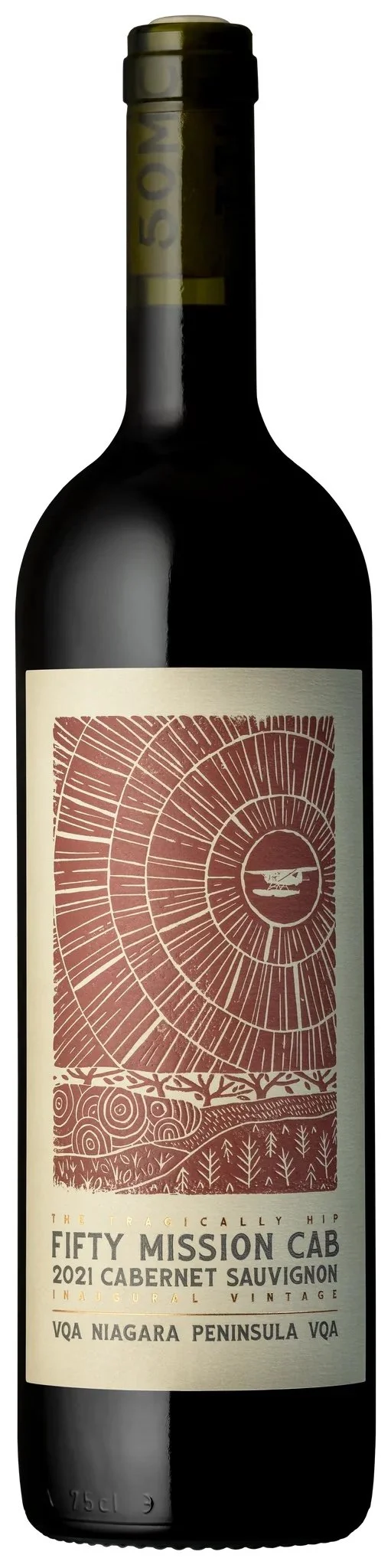 The newest wine offering from The Tragically Hip commemorates the 30th anniversary of their seminal album, Fully Completely which includes one of the band's most popular songs: "50 Mission Cap". The band's first wine. A robust Cabernet Sauvignon, deep ruby to garnet in colour. The nose showcases deep notes of black cherry, wild blueberry compote, plum, floral notes of violet and lavender, and smoky spicy notes of black pepper, anise and caramel. The palate is medium to full bodied with elegant flavours of cassis, raspberry, and blackberry jam with hints of cigar, savoury herbs, and a toasty oak finish.
